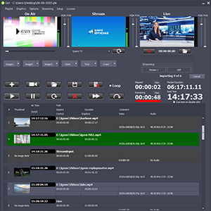 - Ele permite inserir eventos ao vivo em sua lista de reprodução, bem como gravar o sinal ao vivo em alta qualidade em MP4. Para capturar os sinais ao vivo, é necessário uma pleca Blackmagic Design, que permite a captura via SDI ou HDMI. Também apoiamos a captura via USB (por exemplo, webcams)
